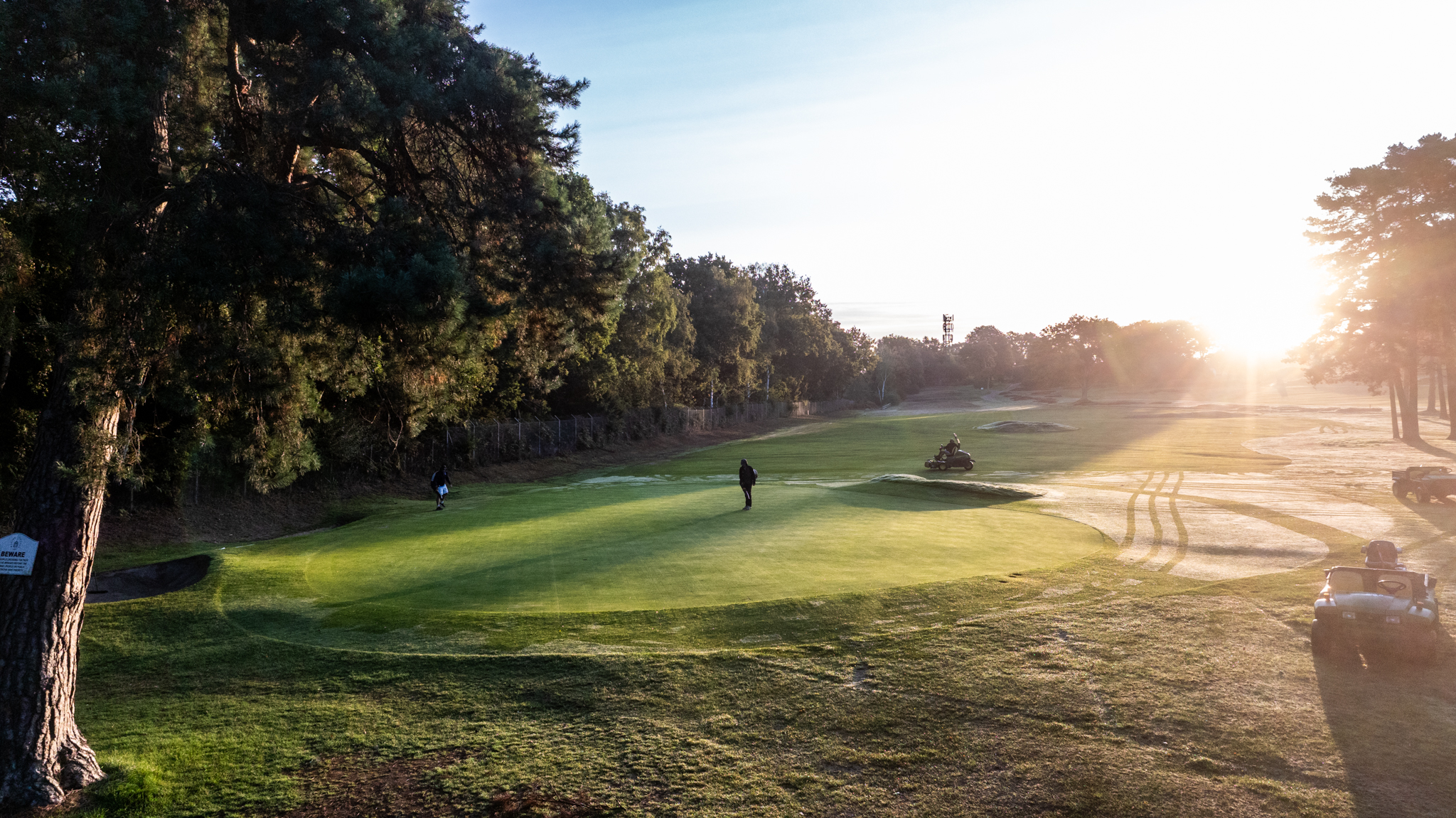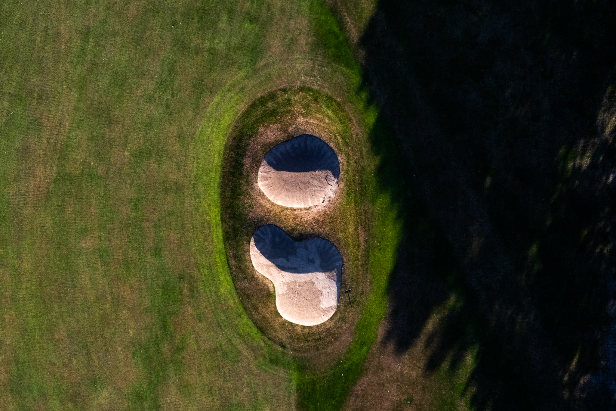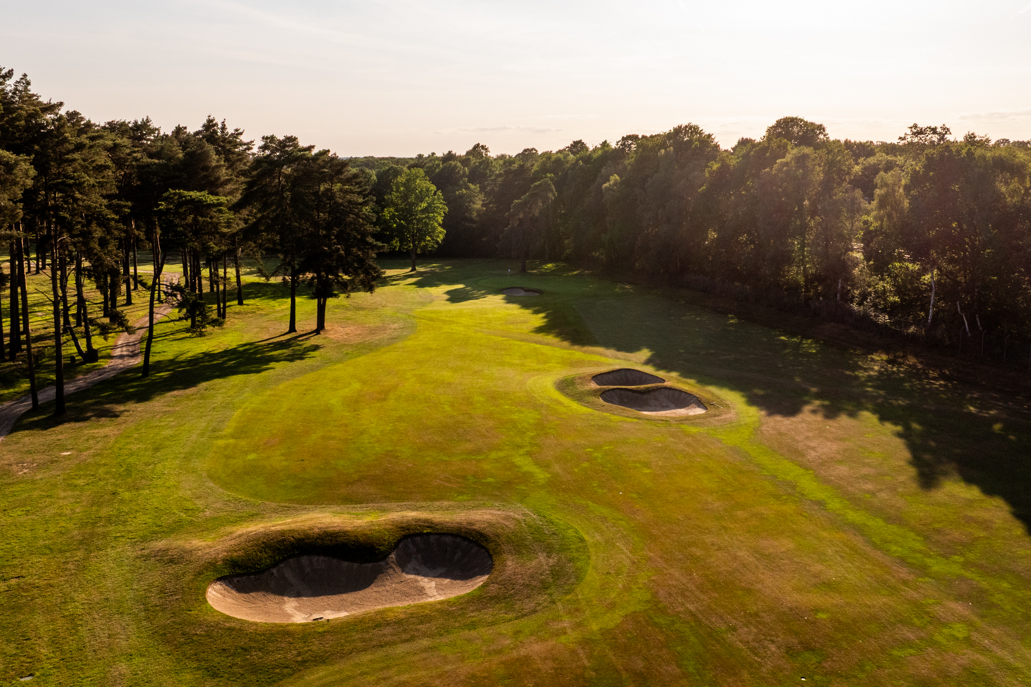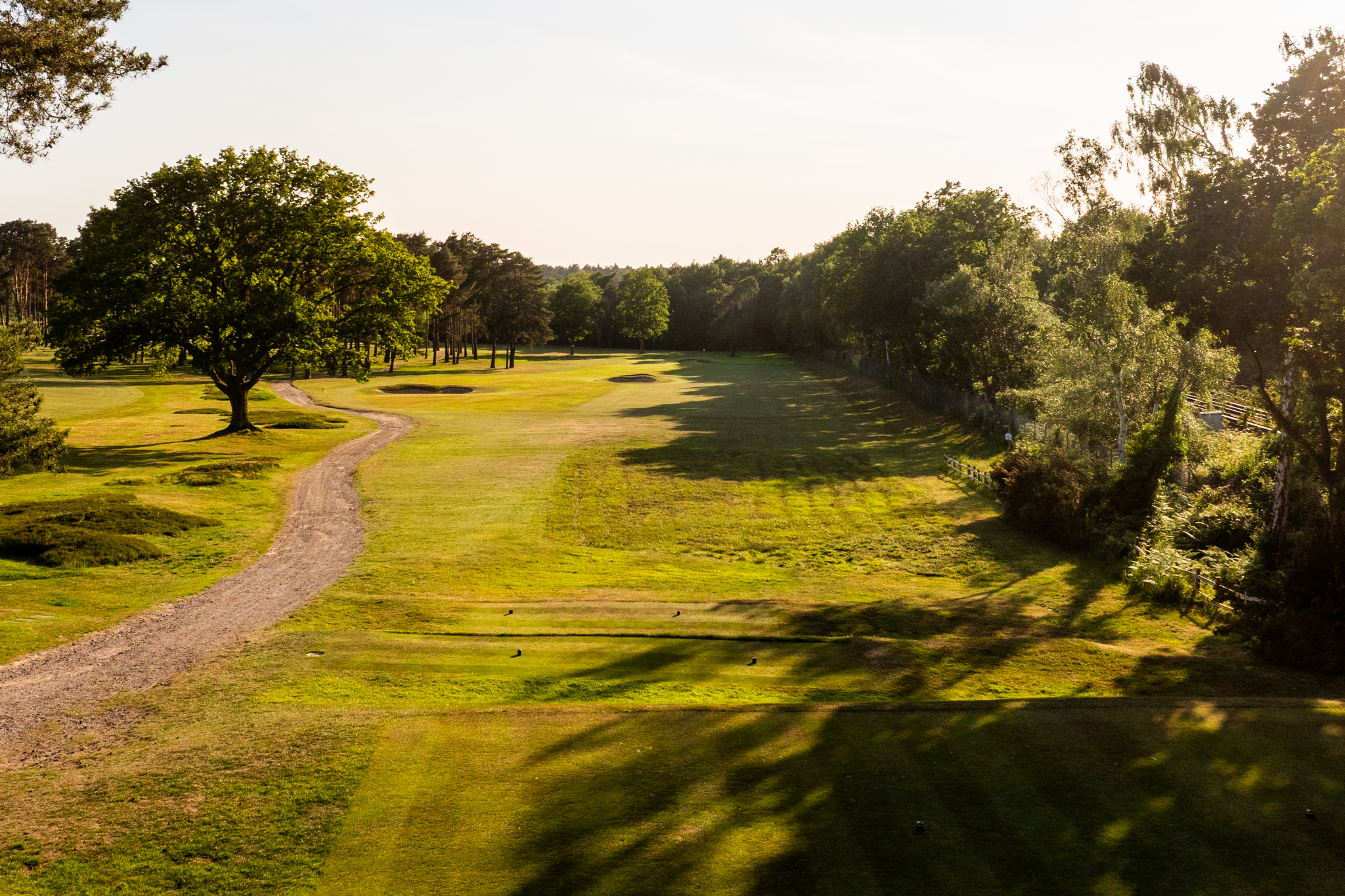 A straight par 4, running parallel to the railway line. The more aggressive drive is to the right hand side of the two bunkers in the middle of the fairway, which makes for an easier approach shot. The green is well protected by a bunker at the front and by a row of bunkers around the right hand side.