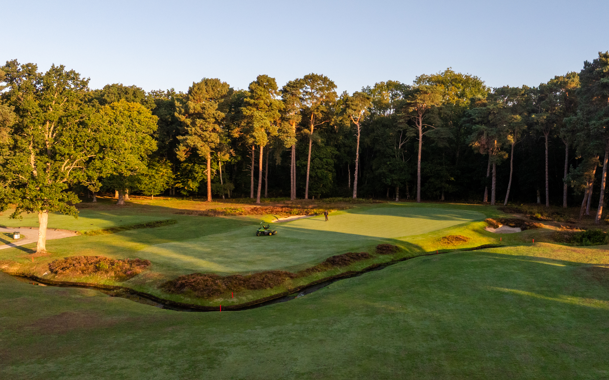The elevated tee provides one of the best views over the course. A long drive is required to provide an opportunity to reach the green with your second shot. The approach to the green is played over a stream which winds across the hole. There is a small bunker at the front right, while the one at the back left waits to catch any over hit shot.